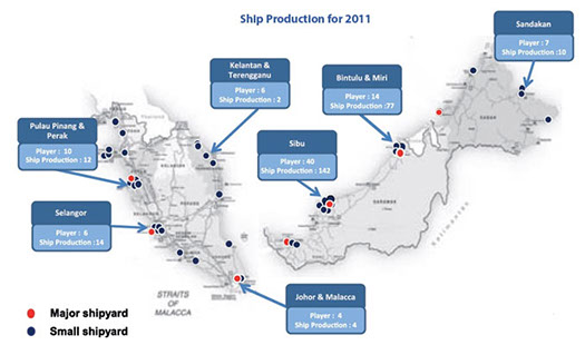 Malaysia is home to more than 60 active shipbuilders, including a concentration of more than 40 builders of all kinds of steel and aluminum vessels of up to 5000DWT in the city of Sibu in the state of Sarawak. Malaysia is a notable exporter of vessels to Southeast Asian nations and beyond. Expertise spans anchor handling tug/supply vessels, tugs, patrol boats, survey vessels, ro-ro vessels, landing craft, and support vessels. Small vessels account for around three-quarters of industry output, which is generally around the 250-300-vessel level annually. Barges, harbour/ river tug boats, and other smaller capacity boats that normally ply within the coastal waters dominates the new build activities.